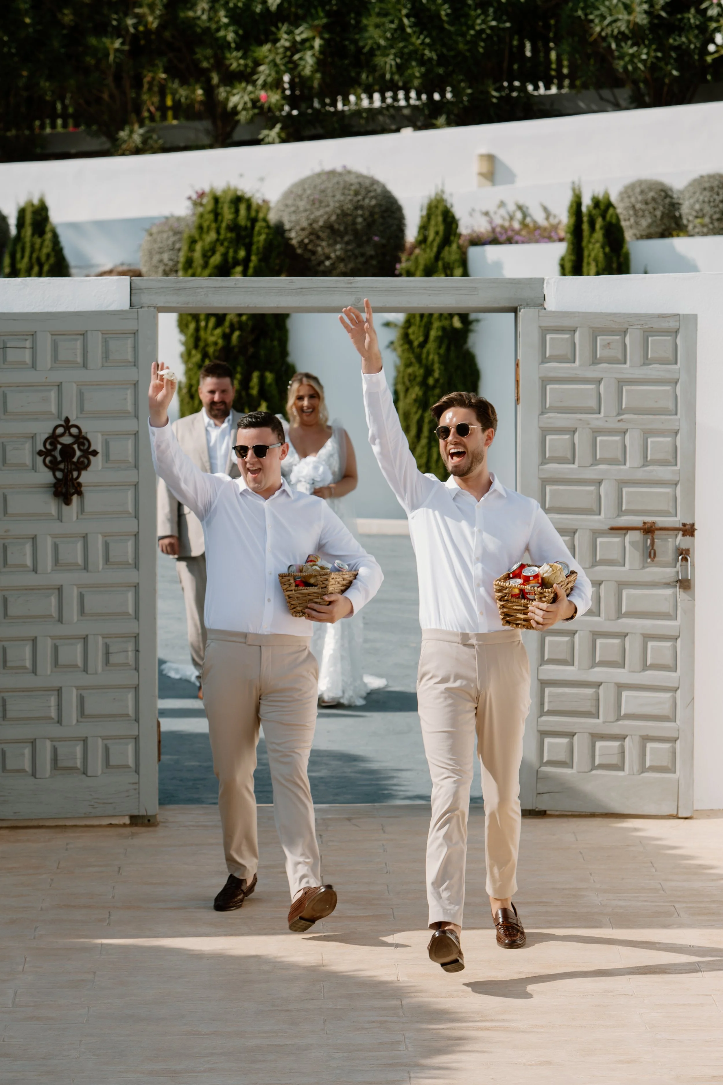 The fashion should always compliment your wedding theme and colours. For an Ibizan boho-chic wedding, think pastels, long and flowing dresses and neutral linens and cottons. If you are going old school formal, think black and white, sharp tailoring and bejewelled gowns!